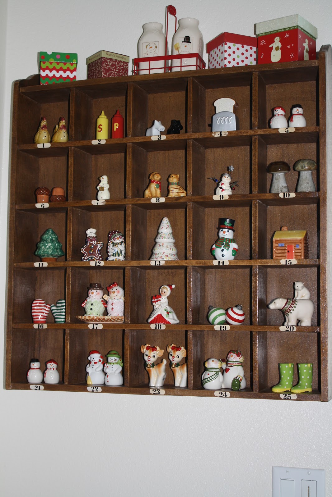Oh, my goodness! What gorgeous things you have! You've certainly done a lot of work getting this beautiful Christmas display.......d like to know where you got the shadow box your salt and pepper shakers are in......I need one of those!