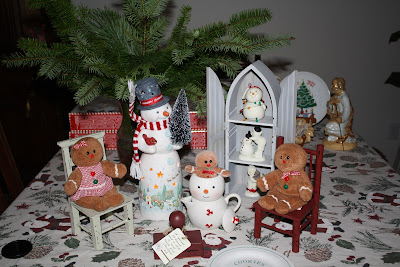 snow angel putting snowmen hat on, gingerbread in a tea pitcher, caroling snow~family, and of course your tree's and the cranberry wreath! It's all so Grand!